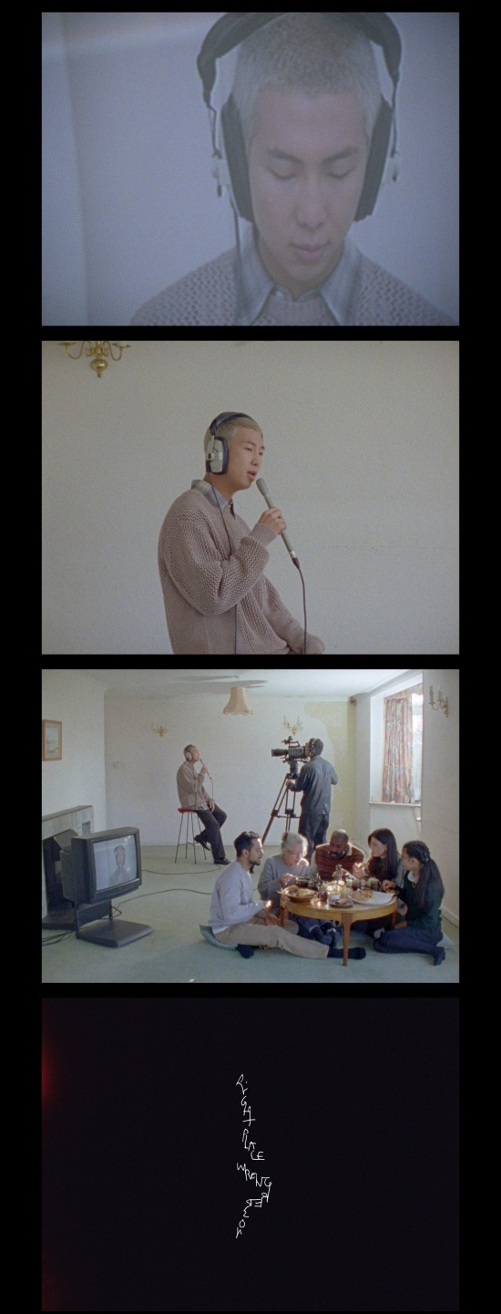 The video is approximately 1 minute and 21 seconds long. RM appeared wearing headphones. “When the credits roll, do you leave or do you stay,” he sang.
