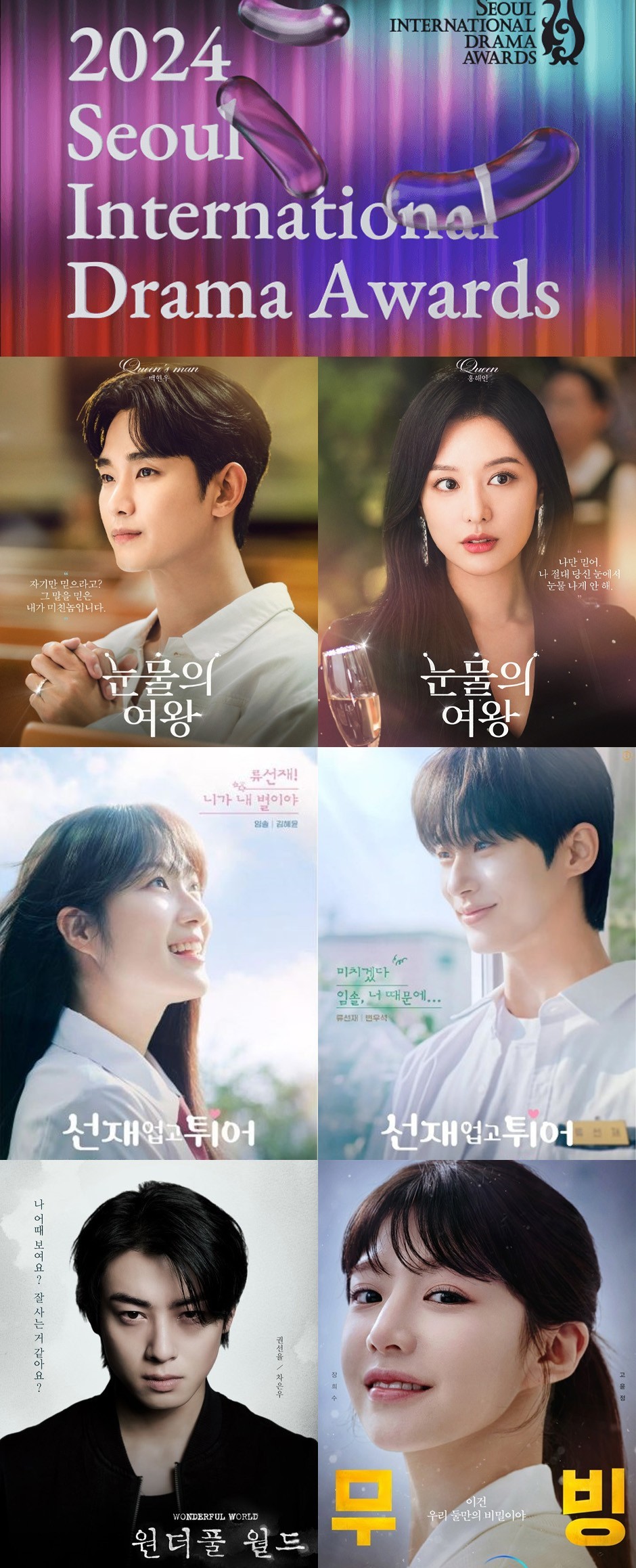 Korean female actress nominees include Kim Ji-won (Queen of Tears), Kim Hye-yoon (Lovely Runner), Lim Yoon-a (King the Land), and Go Yoon-jung (Moving).