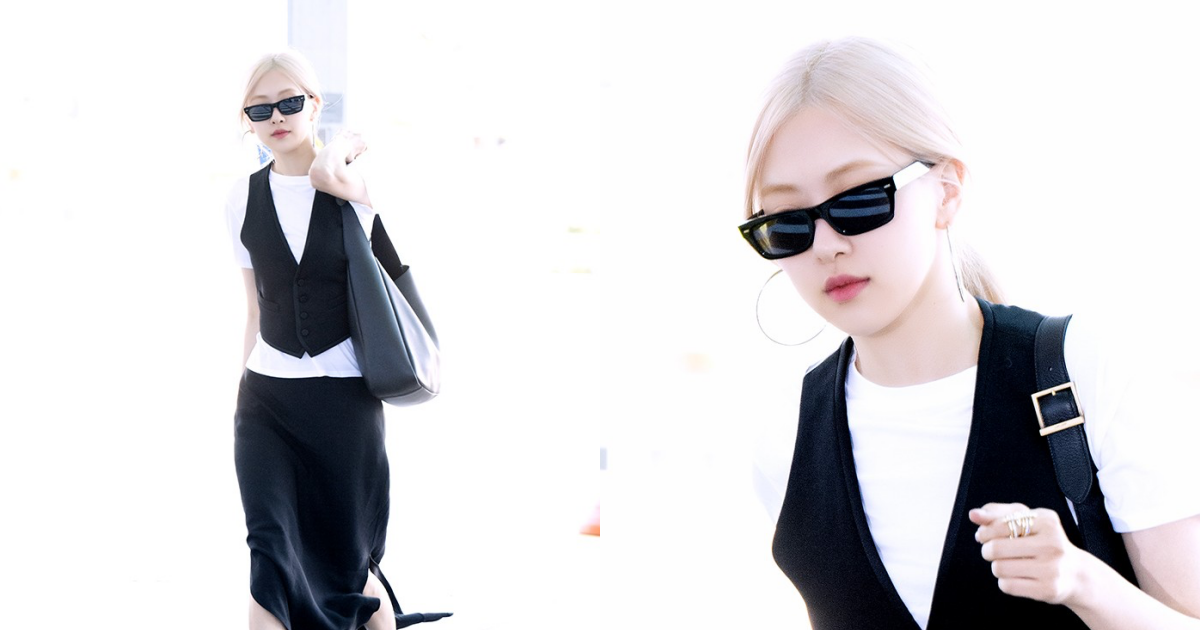 Rosé showcased a simple airport fashion by perfectly matching black and white. Her chic aura was prominent.