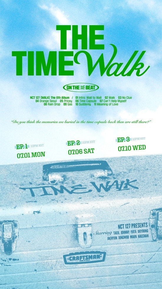 The content is titled 'THE TIME WALK'. It is produced in a drama tights format. NCT 127's friendship story is combined with their new songs.