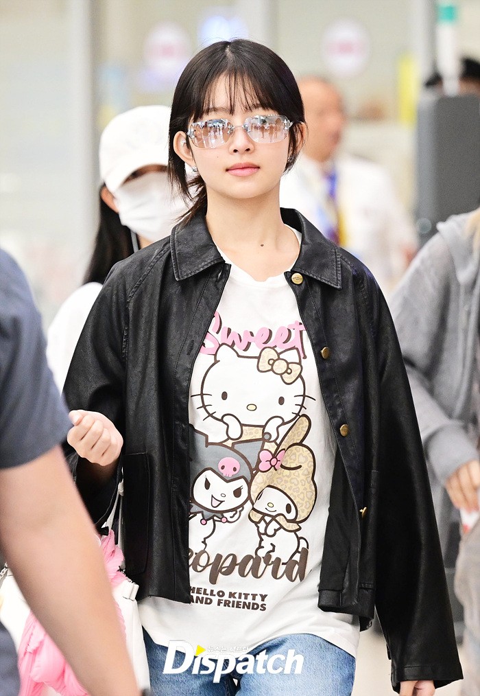 Despite the long flight, Rei appeared cheerful as she exited the arrival hall. Her cute airport fashion, featuring an adorable Hello Kitty T-shirt, also stood out.