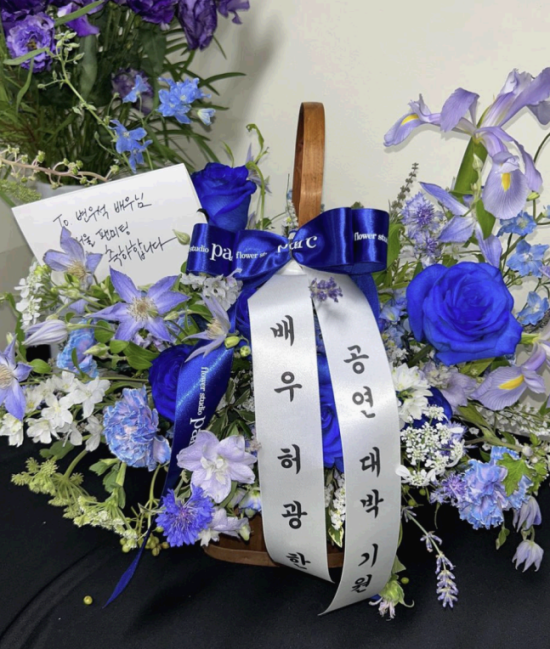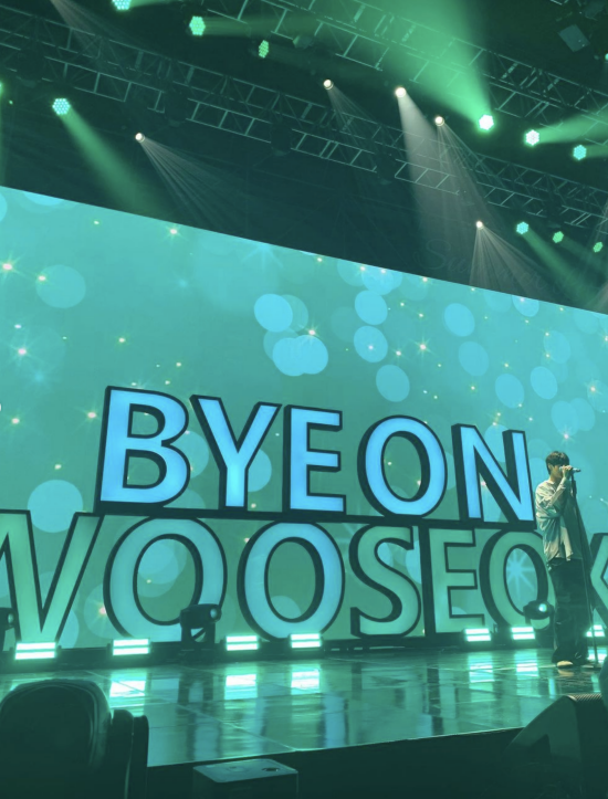 The photos show him preparing for a fan meeting in Seoul. He also showed off a flower basket from Taiwanese actor Kuanghan Hsu, which read, "Best wishes for a successful performance, actor Kuanghan Hsu." The basket also contained a letter from Kuanghan Hsu saying, "Byeon Wooseok, congratulations on your Seoul fan meeting.
