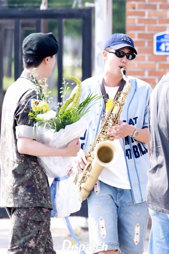 "I didn't even know that he was playing saxophone on the sidelines, and I found out later that the BGM was 'Dynamite' when I saw it on the internet," he recalled, adding, "Because I'm a teaching assistant, I often hear the saxophone recorded by the military band at graduation ceremonies and induction ceremonies, so I thought they played that song for me to leave the military."