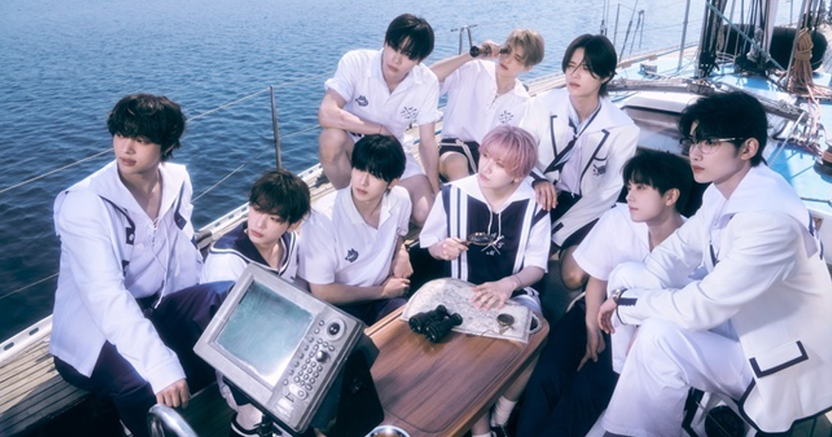 The concept photo released today captures the nine members of &TEAM sailing against the backdrop of the vast ocean and the scorching sun. &TEAM is gathered on a boat with a large sail, facing the same direction. They are dressed in a crisp 'marine look' that blends in with the shimmering waves to create a sense of unity.