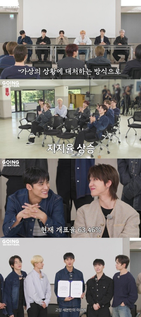 On the 17th, SEVENTEEN posted "EP.108 Class Leader Election #2" of "GOING SEVENTEEN" on the team's official SNS and YouTube channels. The broadcast featured candidate hearings, debates, and the final vote for the class leader.