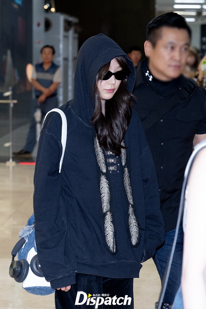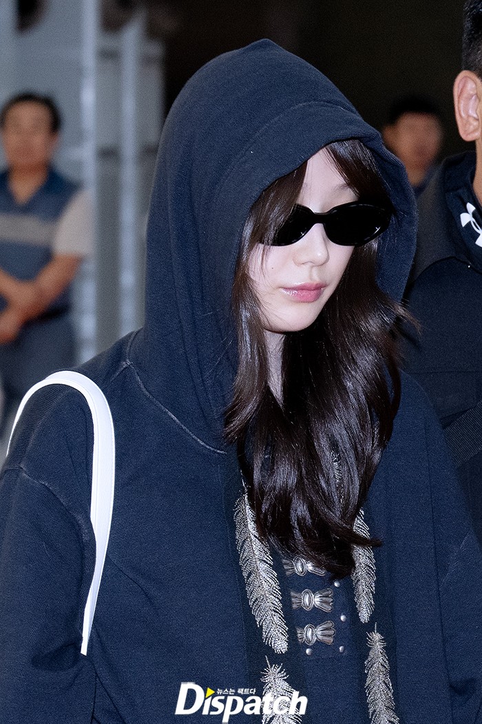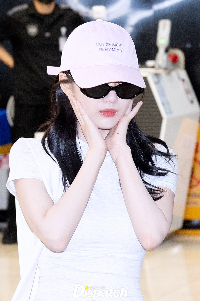Ningning sported a chic airport fashion with black pants and a white shirt, highlighting her elegant aura.