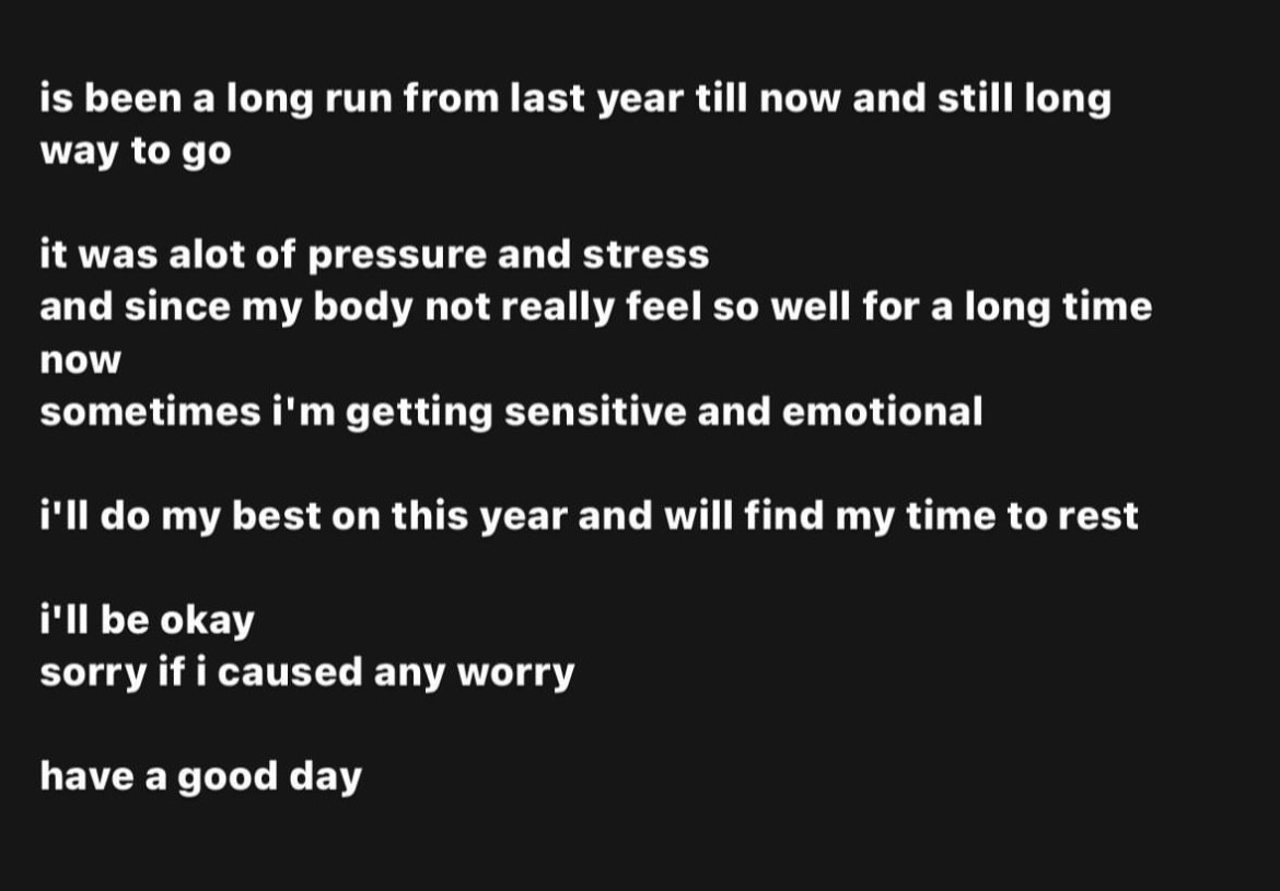 He also sent an apology message to his fans. He reassured fans, saying, "It'll be okay. I'm sorry if I made you worry," and "I hope you have a good day."