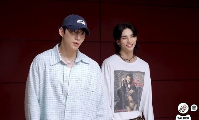 On this day, a behind-the-scenes video of Stray Kids' Hyunjin and Junho filming the new song 'ChkChkBoom' challenge was revealed. After seeing Hyunjin's demonstration, Junho exclaimed, "You're good." Junho said, "How do you learn and film so quickly these days? That means it'll take me a while," and asked Hyunjin to show him the moves again.