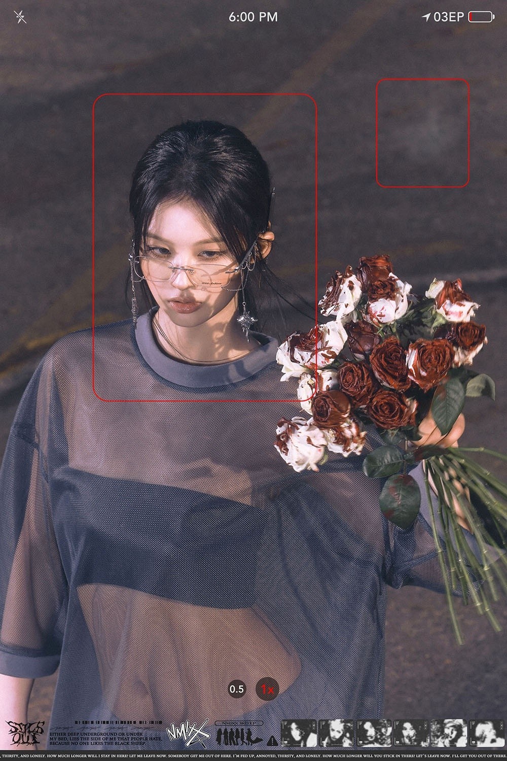 They added mystery with various objects. In particular, the red points in the photos such as footprints, glasses, roses, ribbons, and basketball hoops created an eerie atmosphere.