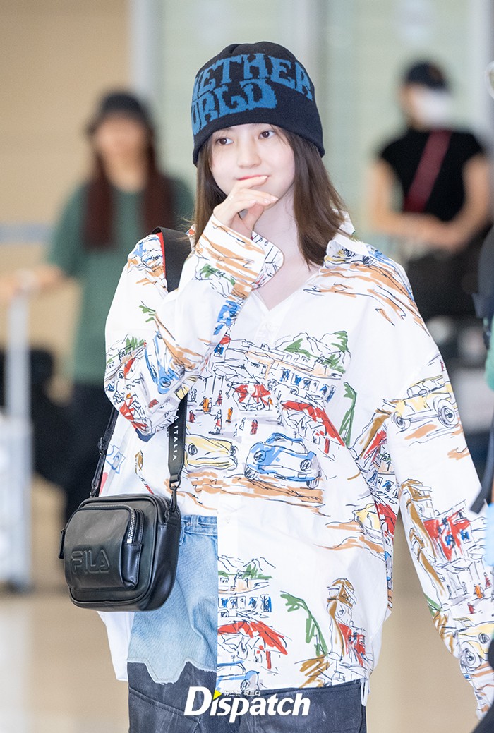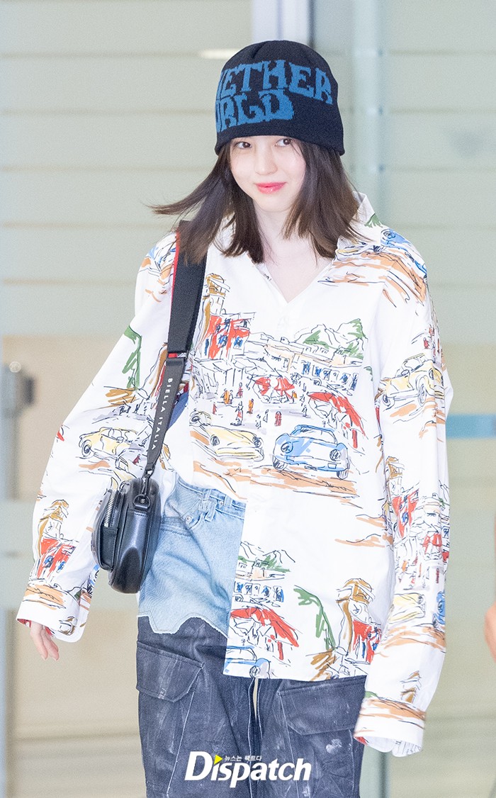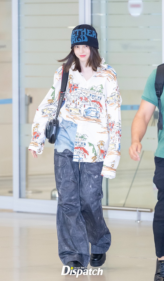 Han So-hee completed her look with a shirt, wide-leg pants, and a beanie. She quickly made her way out of the arrival hall.