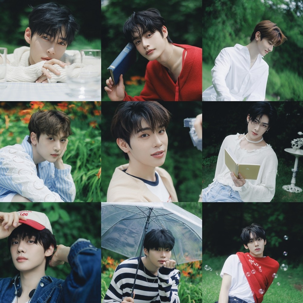 In the photos, ZeroBASEONE is playing pranks on each other in a sunny outdoor garden. The refreshing visuals that make you feel the greenness of summer stand out.