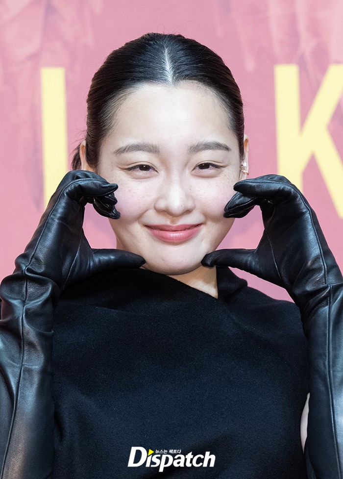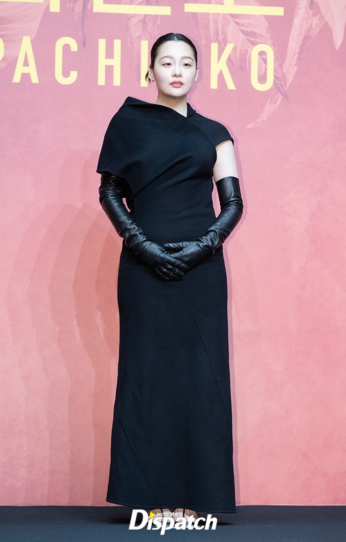 Kim Min-ha attended wearing a black dress with a unique pattern, showcasing her distinctive charm.