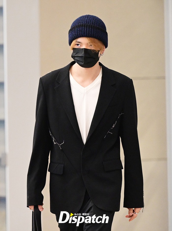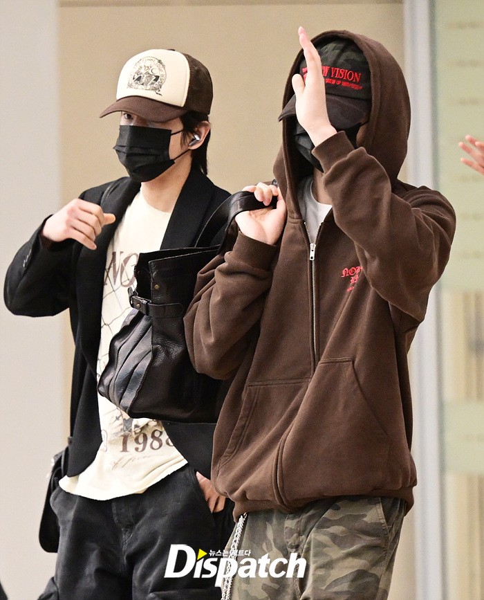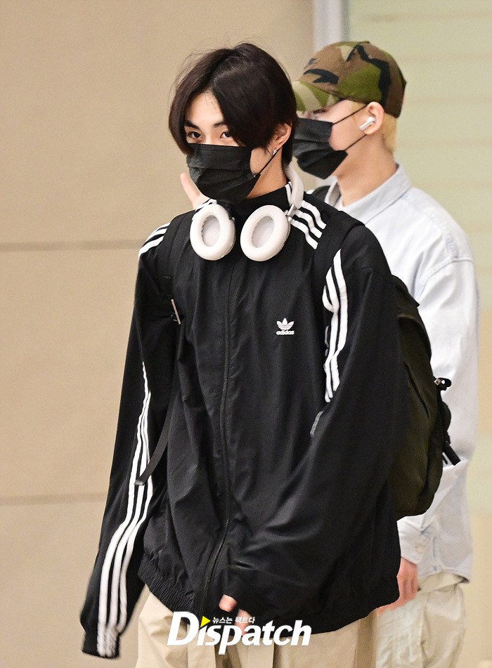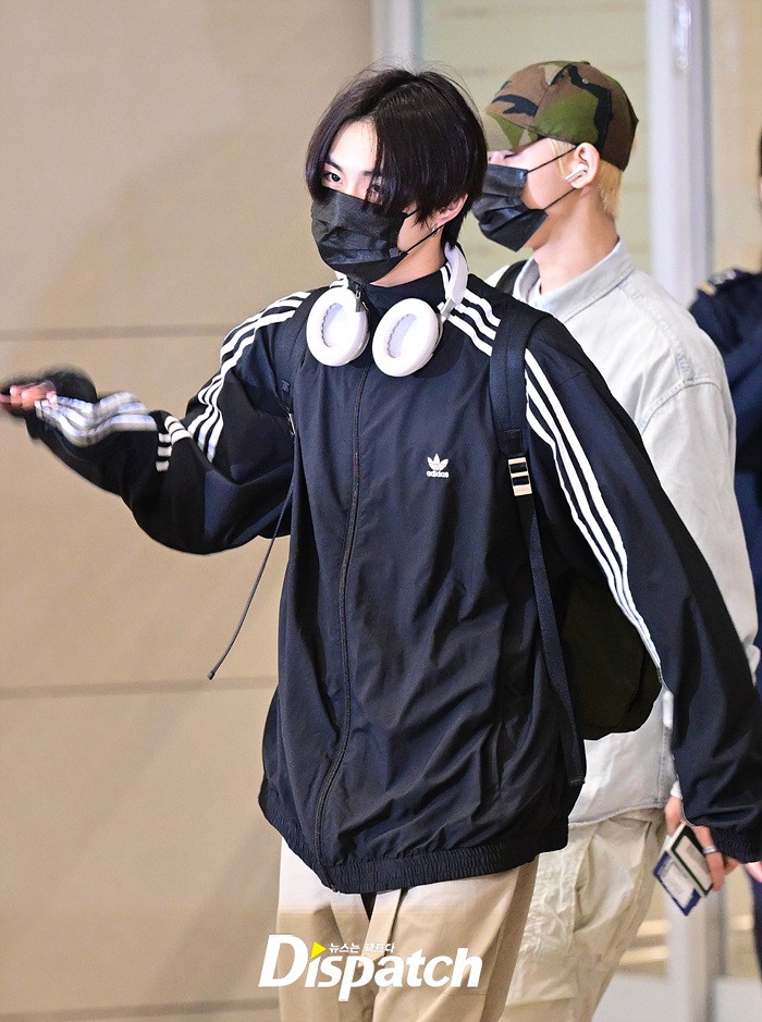 Despite wearing a mask, Jungwon drew attention with his warm visuals. His simple airport fashion, styled in a training outfit, also stood out.