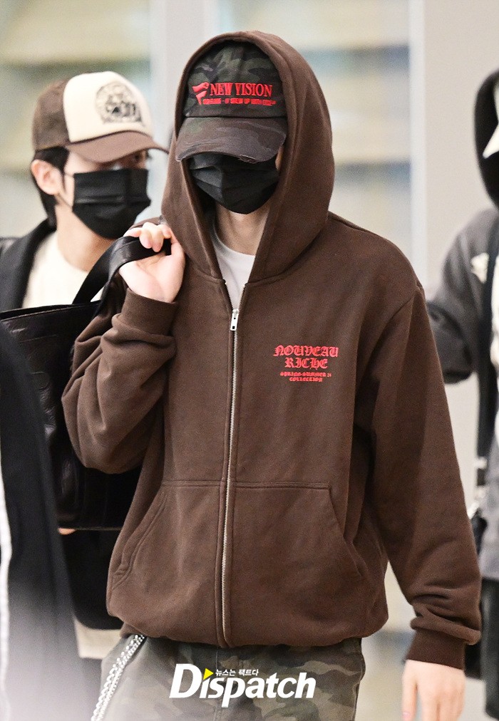 Sunghoon covered his face with a cap, mask, and hoodie, exuding a chic vibe as he exited the arrival hall.