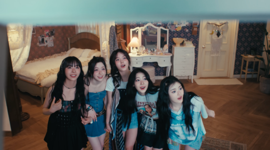 The music video started with five stars flying from far away in space. The members tried to catch the falling star fragments and filled the dark room with star-shaped lights.