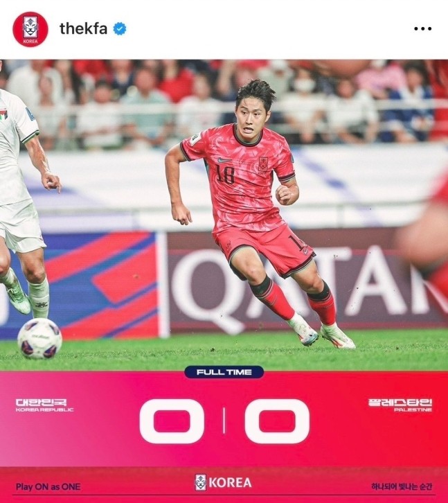 The result was a 0:0 draw. Lee Kang-in bowed his head, saying, “My brothers gave me a good opportunity, but I’m sorry I couldn’t make the most of it. I will become a player who works harder.” The 2nd match of the 3rd qualifying round is an away game against Oman.