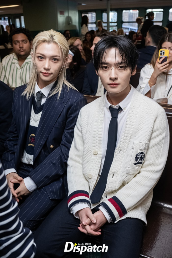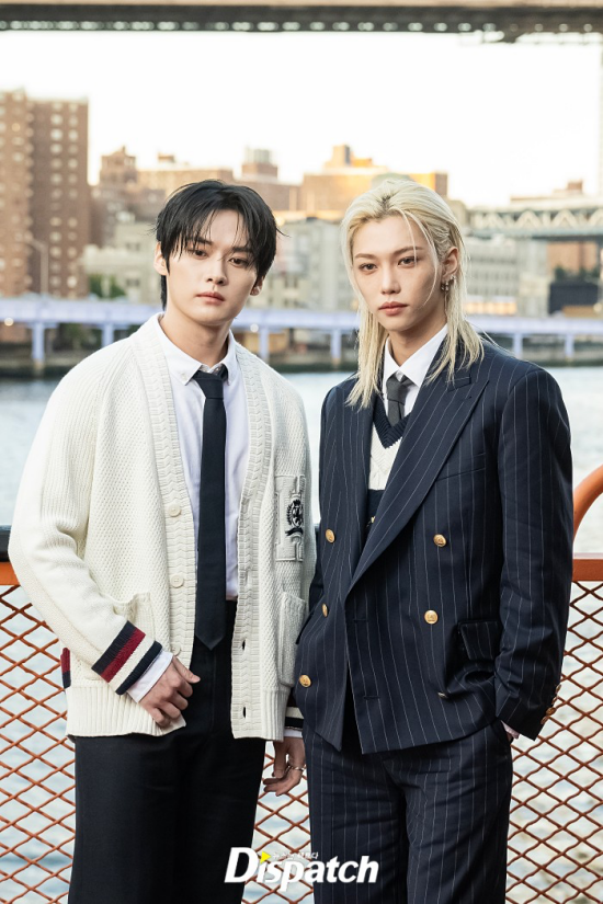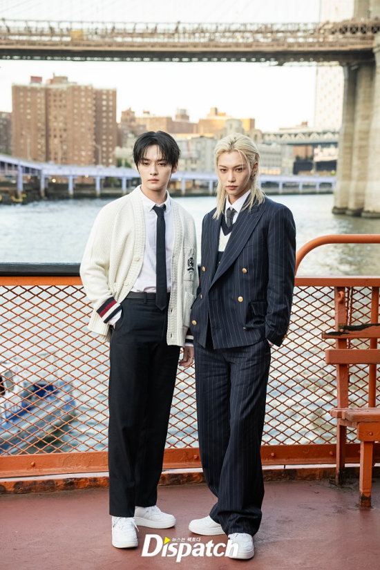 LeeKnow and Felix stepped out for the Spring 2025 New York Fashion Week at the Staten Island Ferry in New York City on September 9.