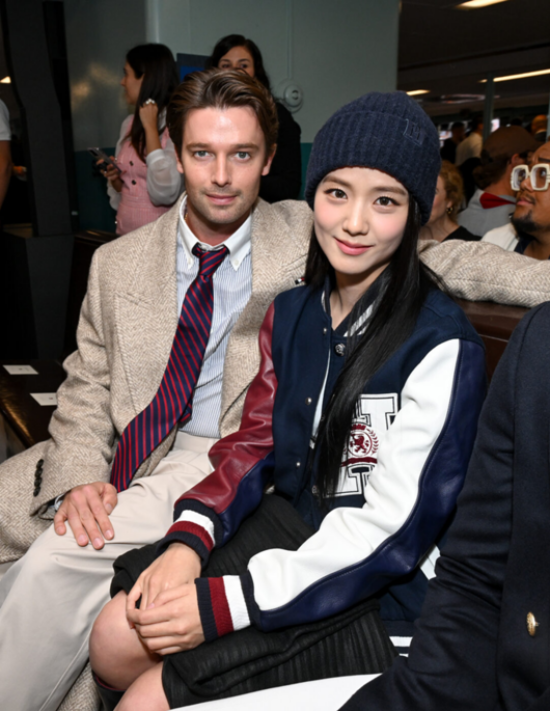 In the photo, Jisoo is wearing Tommy Hilfiger's signature color outfit (blue, white, and red) and sits next to Patrick. Their visual combination caught the attention of fans and online community members.
