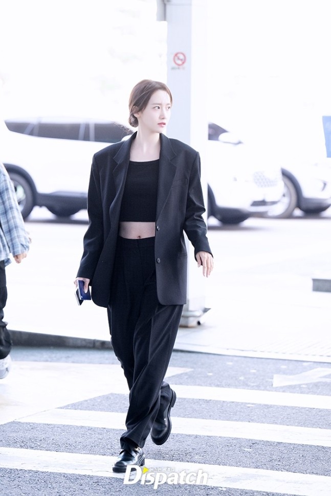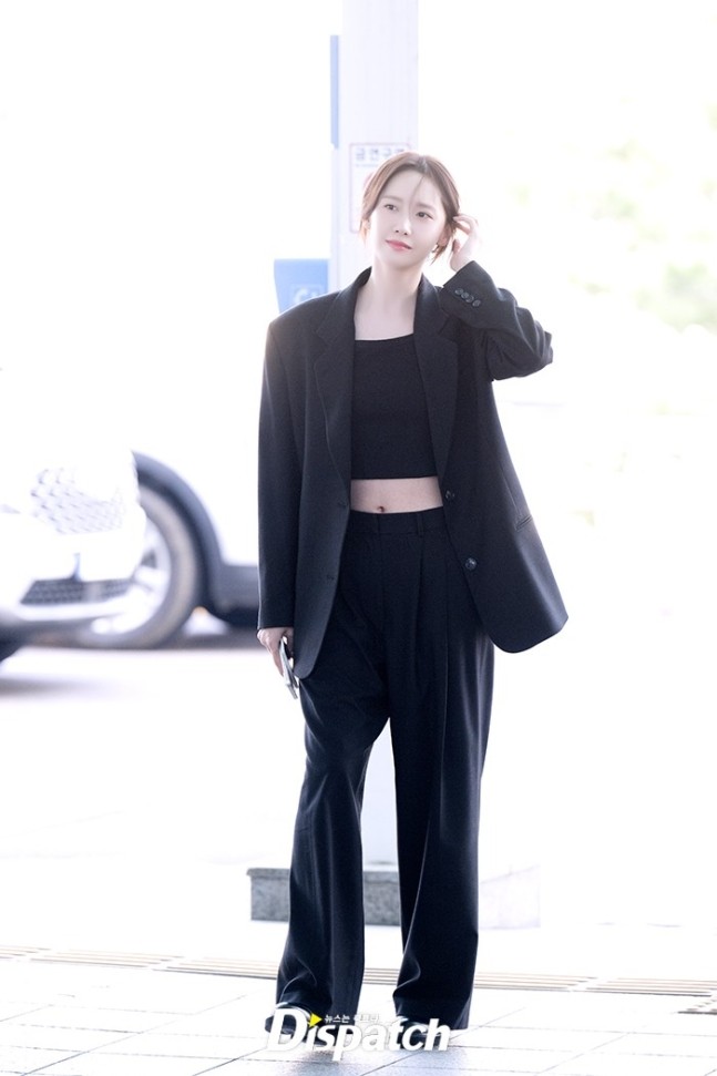 Yoona showed off her chic airport fashion with an all-black set-up. Her elegant beauty stood out.