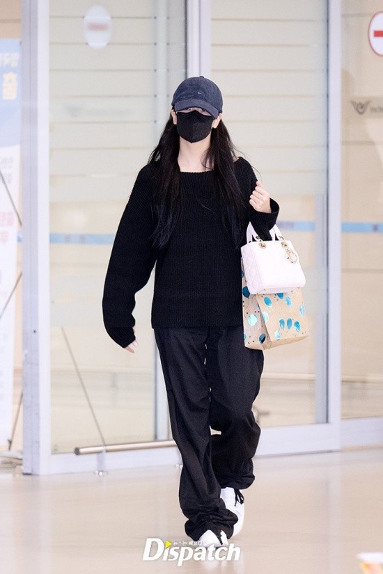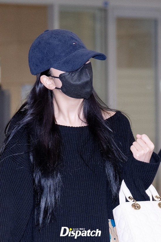 Jisoo wore a chic airport fashion with an all-black look. Her doll-like beauty stood out.
