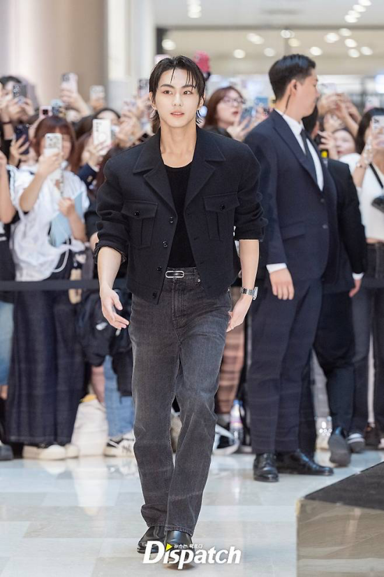 Jungwon completed his chic fashion with an all-black look. The masculine atmosphere stood out.