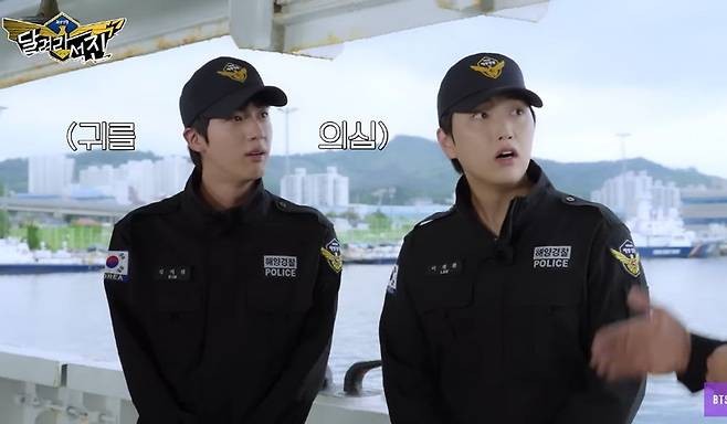 One officer replied, "I know both BTS and B1A4. My favorite BTS member is Jin." Overjoyed, Jin and Sandeul shouted, "Save this person quickly!" and "We need to save him!" which brought laughter to everyone, including the coast guard officers.