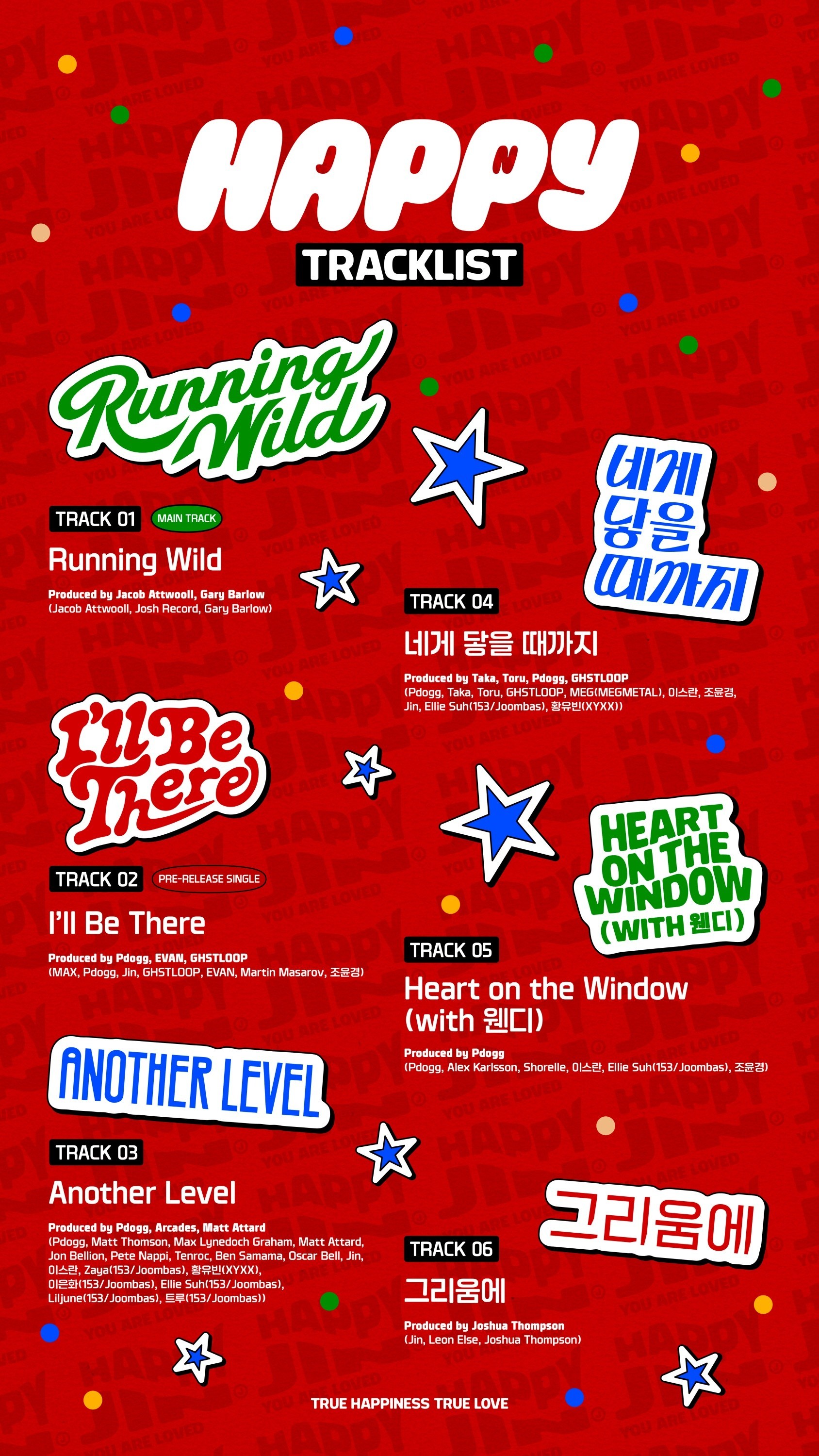 On the 17th, Big Hit Music shared the tracklist image for Jin’s first solo album, 'Happy,' through BTS's official social media accounts, revealing the titles of the new songs.