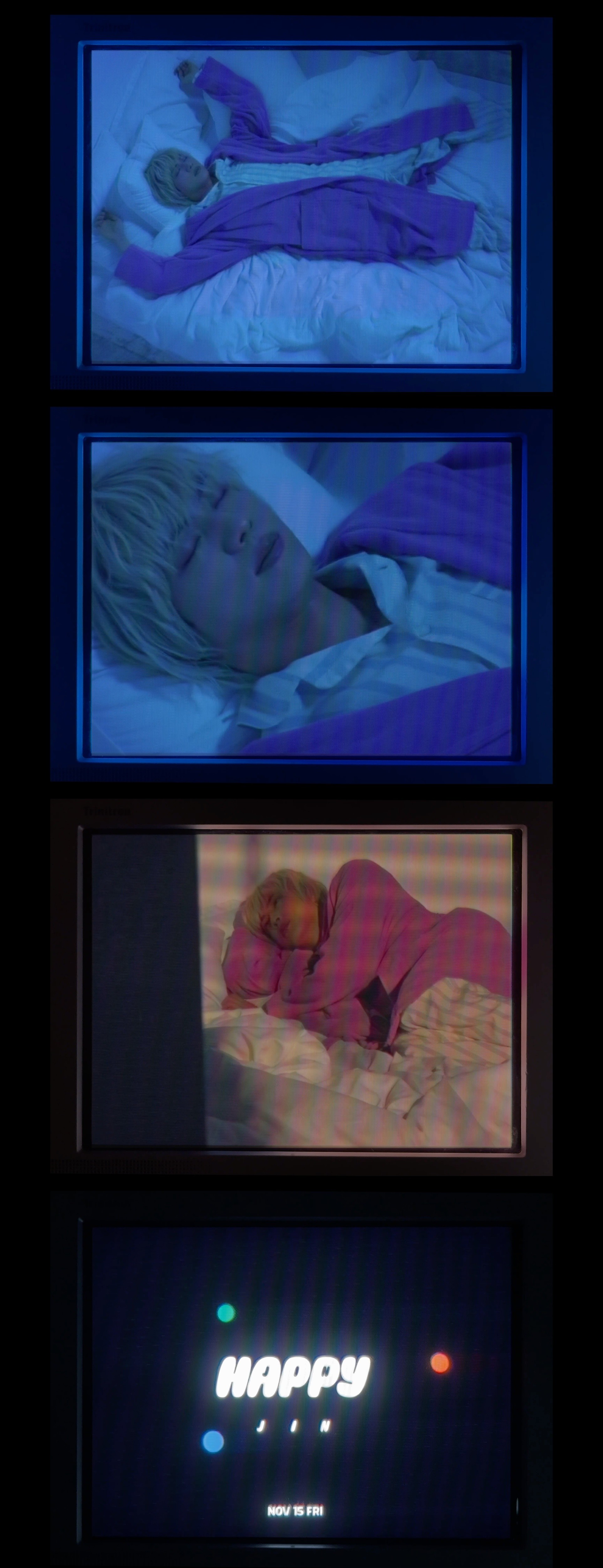 A representative shared, "Jin expresses 'happiness' found in a comfortable space like a home or bedroom, where one can be most natural and at ease. The concept reflects happiness in its purest, personal form."