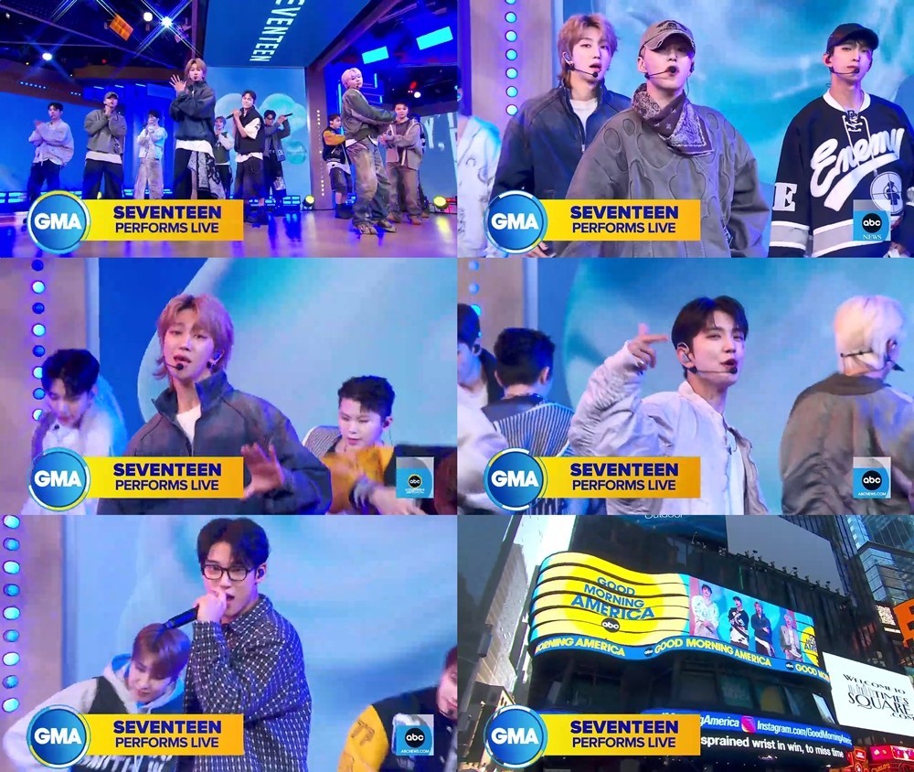 The 'Good Morning America' hosts introduced Seventeen as a "K-pop sensation," noting that this was their debut on a U.S. morning show. When they saw the live audience online, they were amazed: “Already 370,000 people have tuned in to watch Seventeen perform live.”