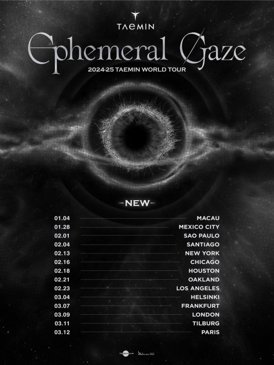 On November 1, Big Planet Made Entertainment unveiled the poster for Taemin's 2024-2025 world tour, Ephemeral Gaze, on its official website. Initially planned for 10 cities in 9 countries, the tour has been expanded to 19 cities across 14 countries, responding to strong support from global fans.