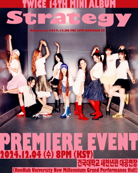 On November 18, JYP Entertainment announced on TWICE's official social media accounts an offline premium event for their 14th mini album, STRATEGY. The event poster was shared to excite fans for the upcoming celebration.