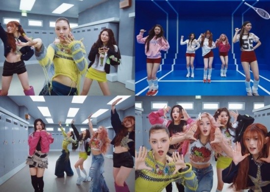 The video begins with ILLIT delivering bouncy choreography to unique mechanical sounds, immediately grabbing attention. Set in the familiar locations of the original Tick-Tack music video—the cabinet-filled room and tennis court—the group showcases their performance from various angles.