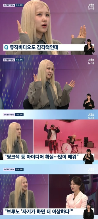 During the interview, Rosé revealed, "Bruno had a clear vision. In passing, he sent me reference videos, saying, 'It would look beautiful if the background were pink,' and described the world he envisioned, from outfits to overall concepts. I learned a lot from him."