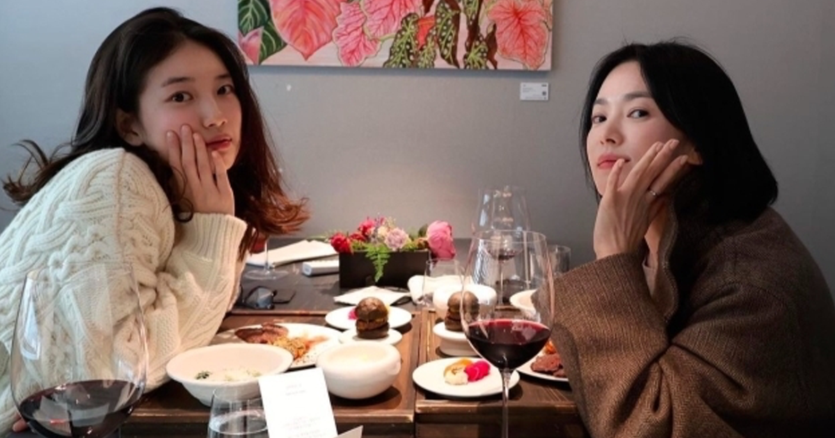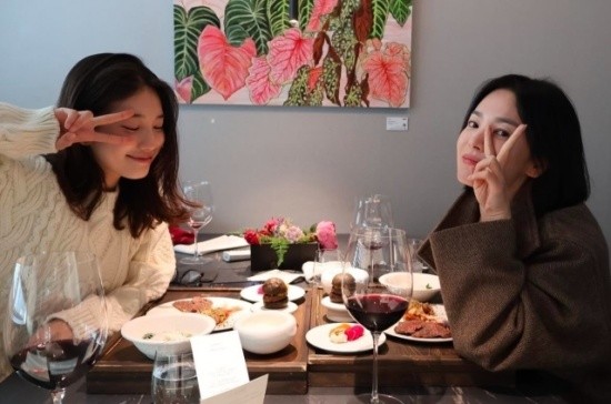 Actress Song Hye-kyo shared her reunion with Suzy on Instagram on December 2, posting, "The day a pretty dongsaeng treated me to a birthday meal," along with several photos.