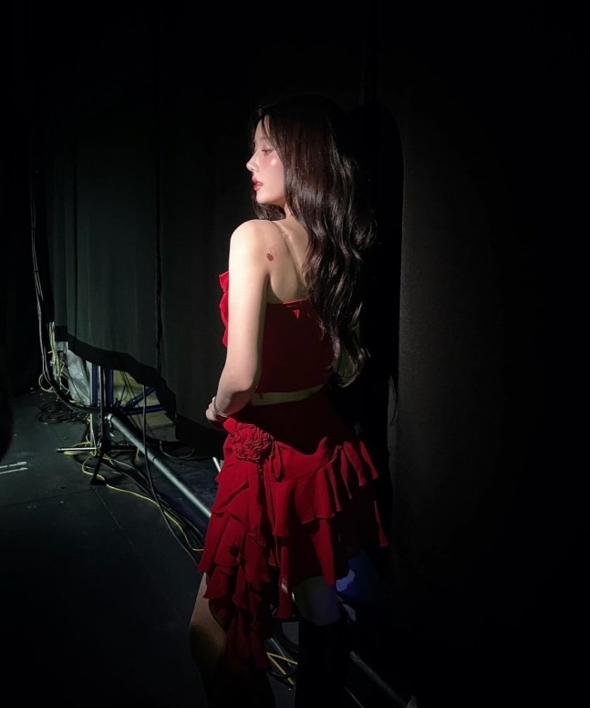 The photos revealed behind-the-scenes moments from her first solo fan meeting held on the 22nd (local time) in Taipei. Dressed in a red dress, Kwon Eunbi displayed doll-like beauty, capturing the hearts of her fans.