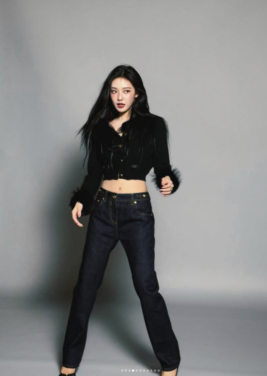 Ningning recently impressed fans on social media, showcasing her stylish look with a black cardigan and deep blue jeans, earning admiration for her chic fashion sense.
