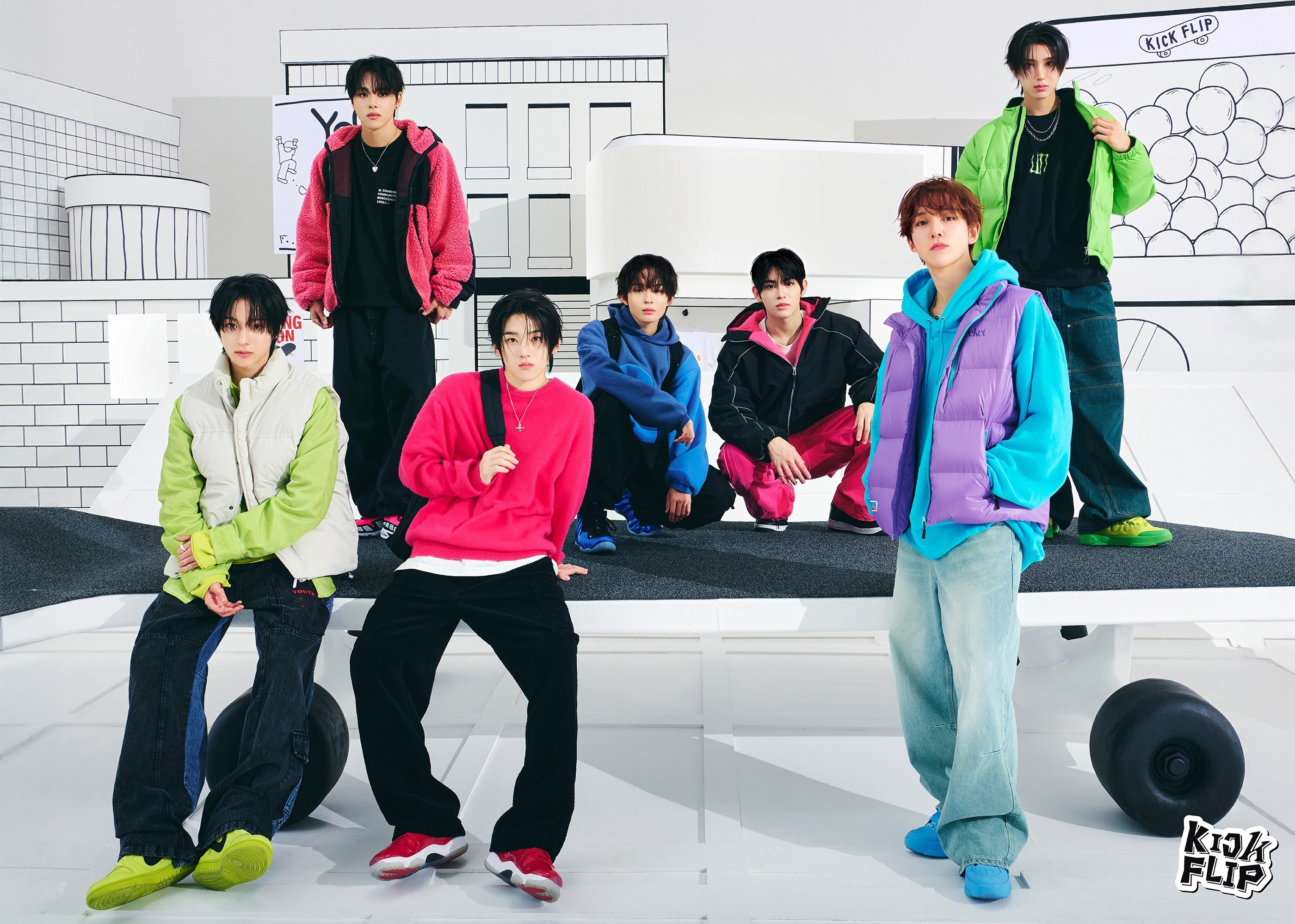 Meanwhile, KickFlip is a new seven-member boy group launched by JYP Entertainment. Their name comes from a high-level skateboarding trick that involves flipping the board 360 degrees.