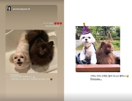 In another post, Jennie shared a nostalgic memory, writing, "Remember how we used to go on walks together?" She also posted a photo of the dogs in a cart, adding a 'Happy Birthday' hat emoji on Jisoo's dog.