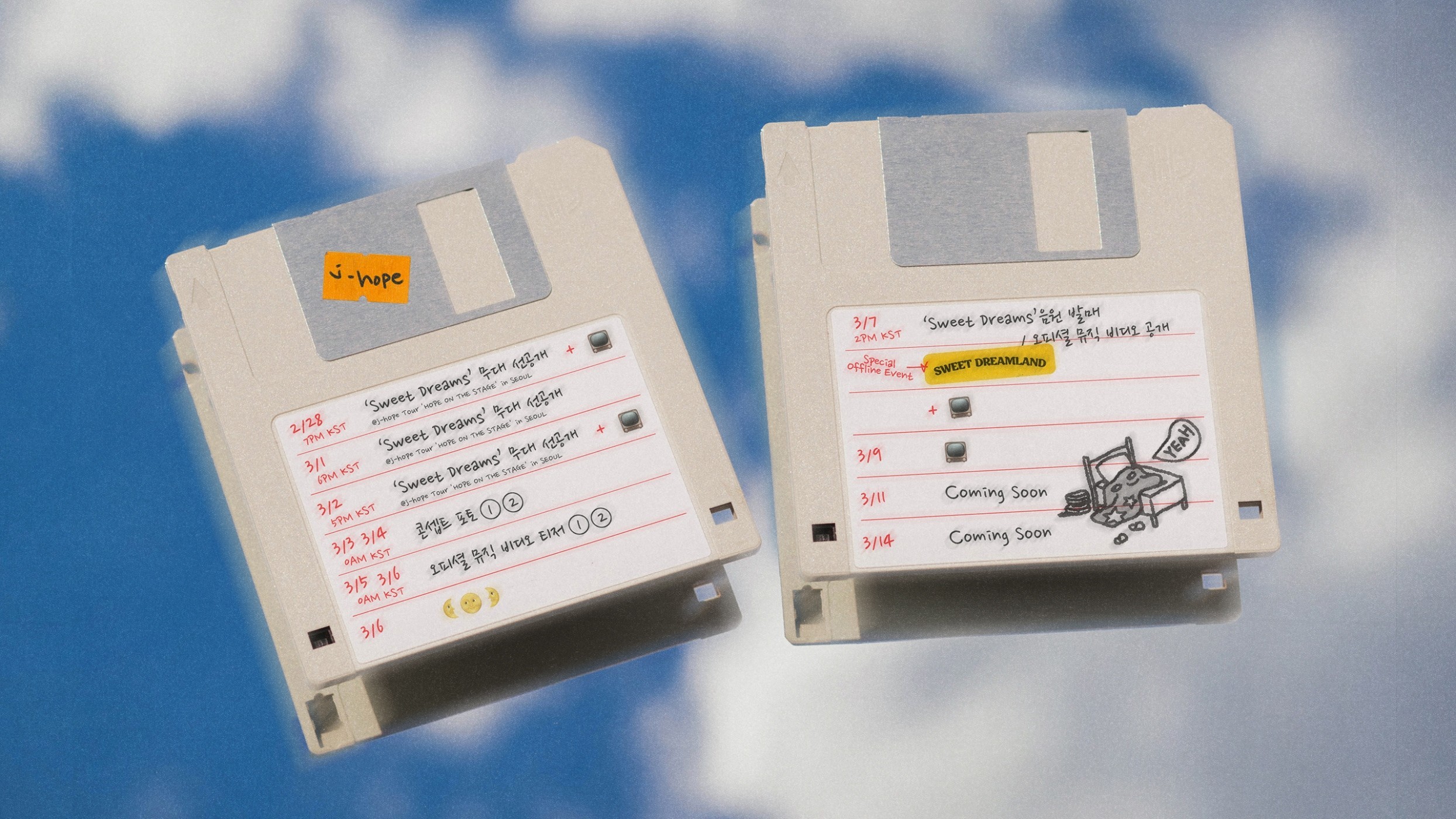 On February 28, BigHit Music dropped a scheduler image for J-Hope's 'Sweet Dreams' via BTS's official SNS. The visual featured a floppy disk floating in the sky, along with his name and a timeline of content releases. The "Coming Soon" teaser alone was enough to stir fans' curiosity.