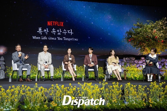 IU shared, "The English title of our drama is When Life Gives You Tangerines. No matter how bitter life's tangerines are, we turn them into tangerine syrup and serve it as warm tea. That's the essence of our story."