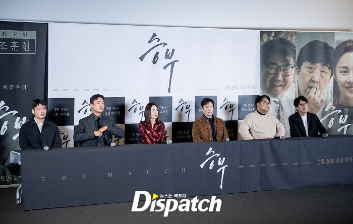 On March 19, the cast and crew of The Match gathered for a press screening and media conference at CGV Yongsan I'Park Mall in Seoul. Lee Byung-hun, Ko Chang-seok, Hyun Bong-sik, Moon Jung-hee, Jo Woo-jin, and director Kim Hyung-joo attended.