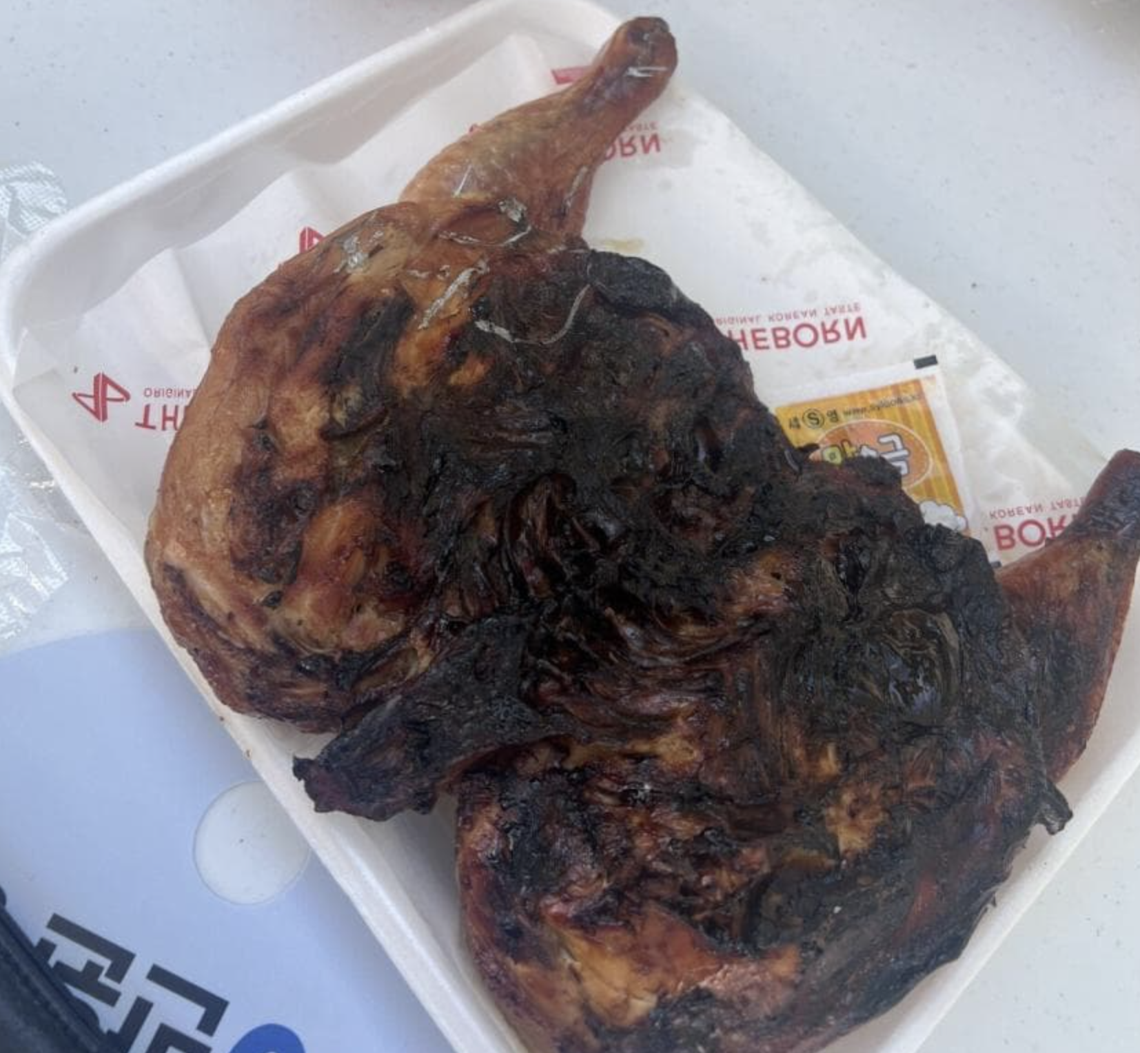 While special grilled chicken, BBQ, and burgers were served as beer pairings, one attendee shared photos of burnt chicken with melted plastic-like substances stuck to it. The dish reportedly cost 18,000 KRW.