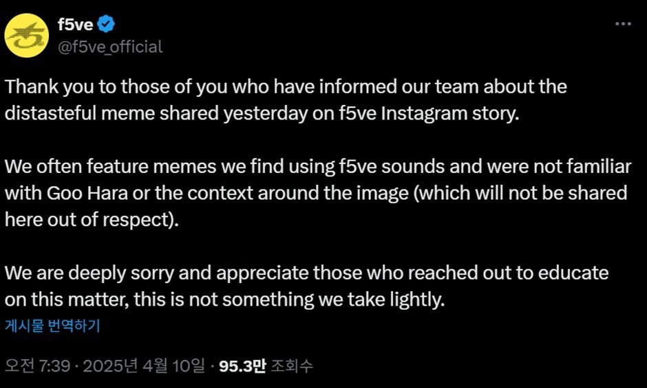 Following the backlash, f5ve deleted the controversial image and issued an apology: