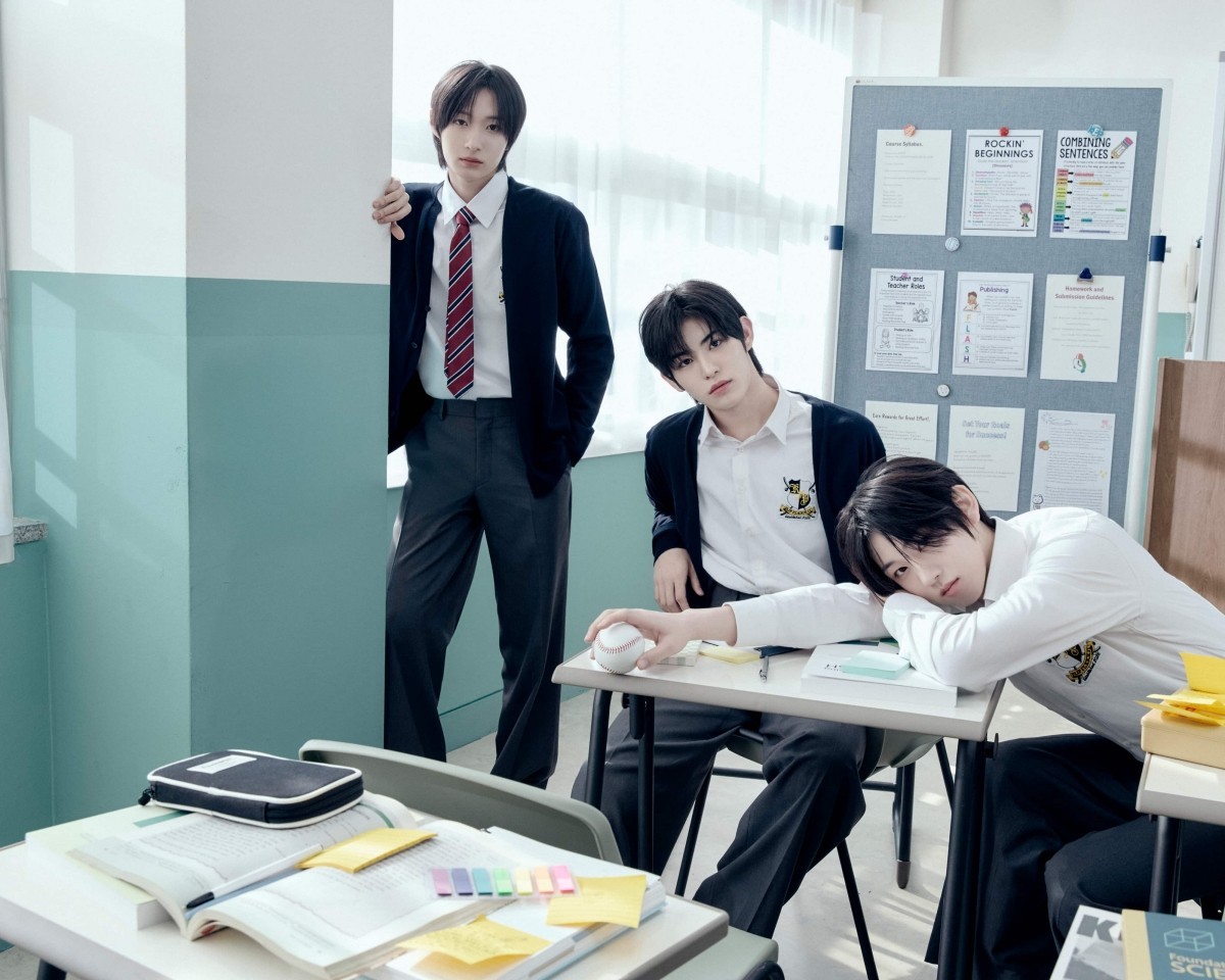 On May 9, Kickflip dropped group and unit concept photos for title track FREEZE via their official social media channels. Dressed in classic school uniforms, the seven members posed in a classroom setting, surrounded by textbooks and stationery, exuding nostalgic high-teen charm.