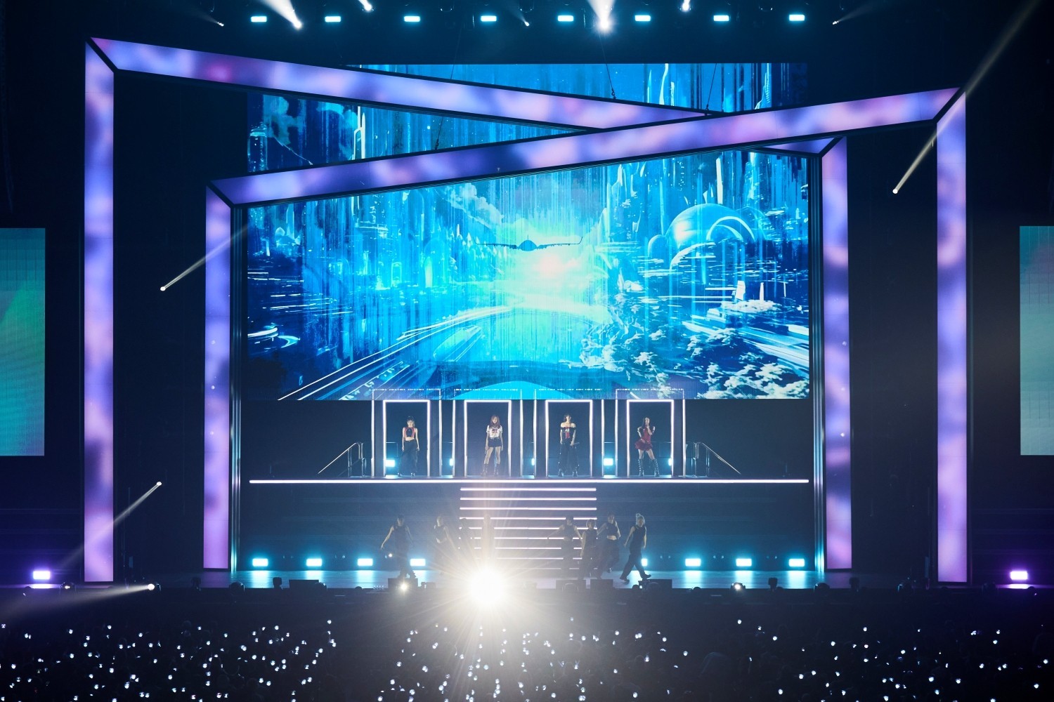 The girls also split into two teams and surprised fans by boarding mobility vehicles to get closer to the audience — a moment that brought the MYs (fanbase name) to their feet.