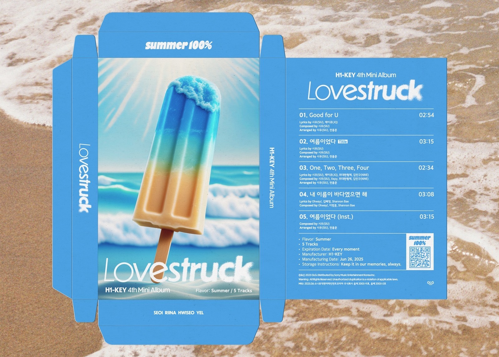 On June 6, H1-KEY unveiled the full tracklist for Lovestruck on their official website. The teaser image—with visuals of crashing waves, ice cream, and a blazing sun—hinted at the group's signature summer charm.