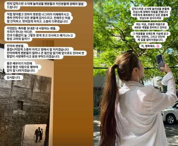 Minah also shared a touching letter via Instagram. "To those surprised by the sudden news, I ask for your understanding. And thank you, sincerely, to everyone who congratulated us with such warmth," she wrote.