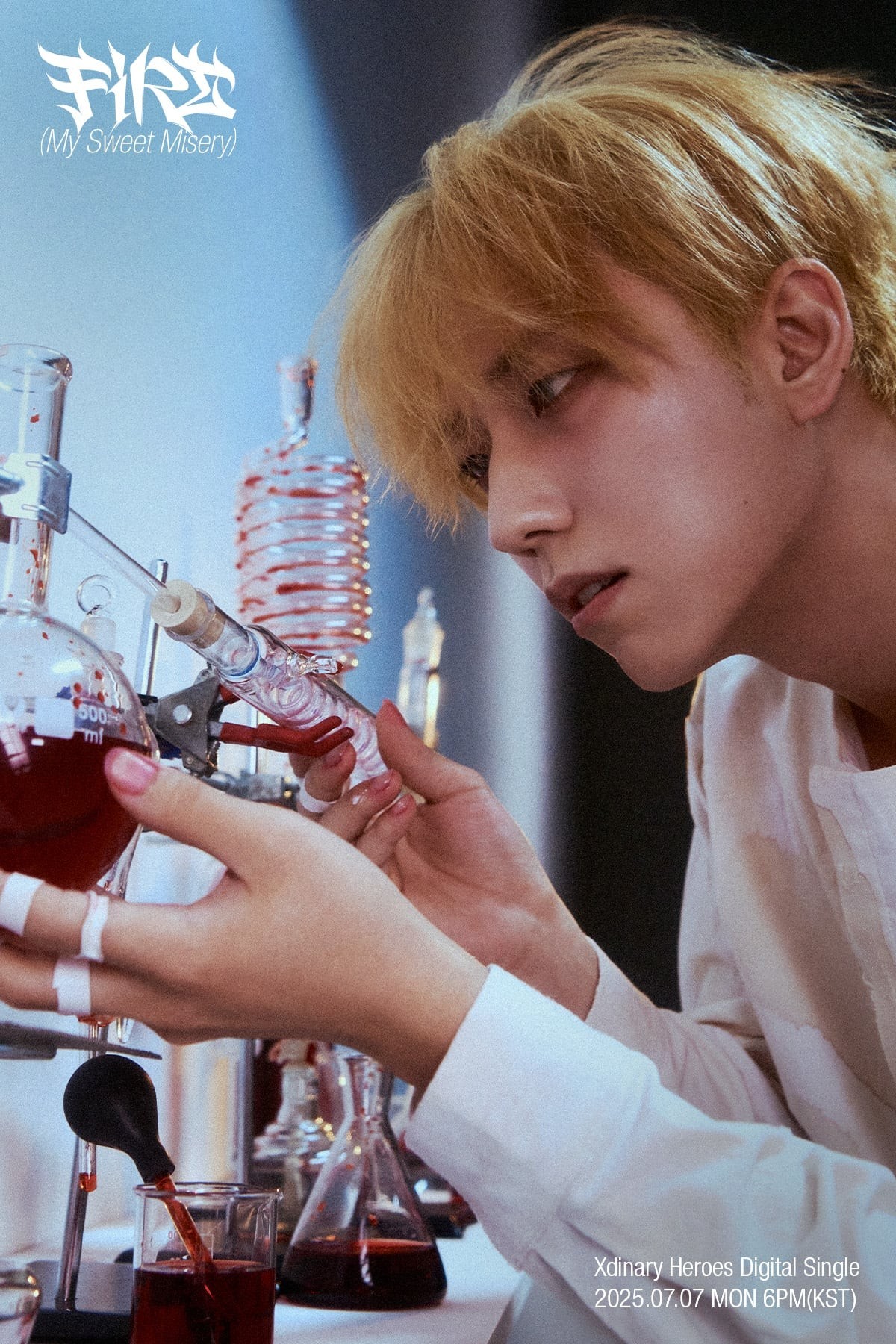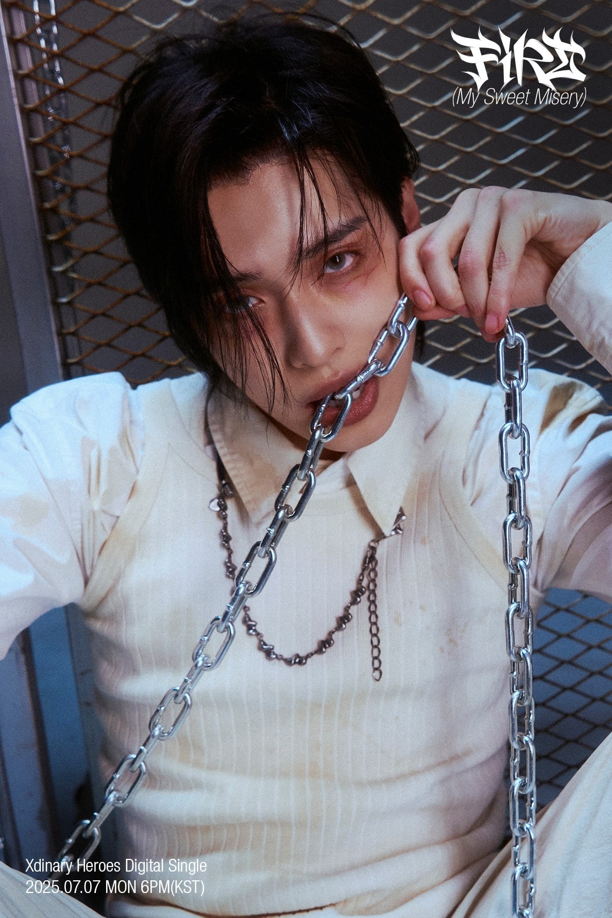 From July 3 to 5, Xdinary Heroes unveiled individual teaser photos for their upcoming digital single 'FIRE (My Sweet Misery)' via social media.