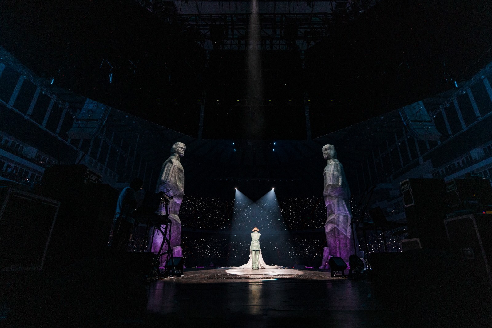 He took to the air on an arm crane, moving closer to fans throughout the stadium. One emotional highlight: singing the classic Mandarin ballad The Moon Represents My Heart (月亮代表我的心) for his Taiwanese audience—earning deafening applause.