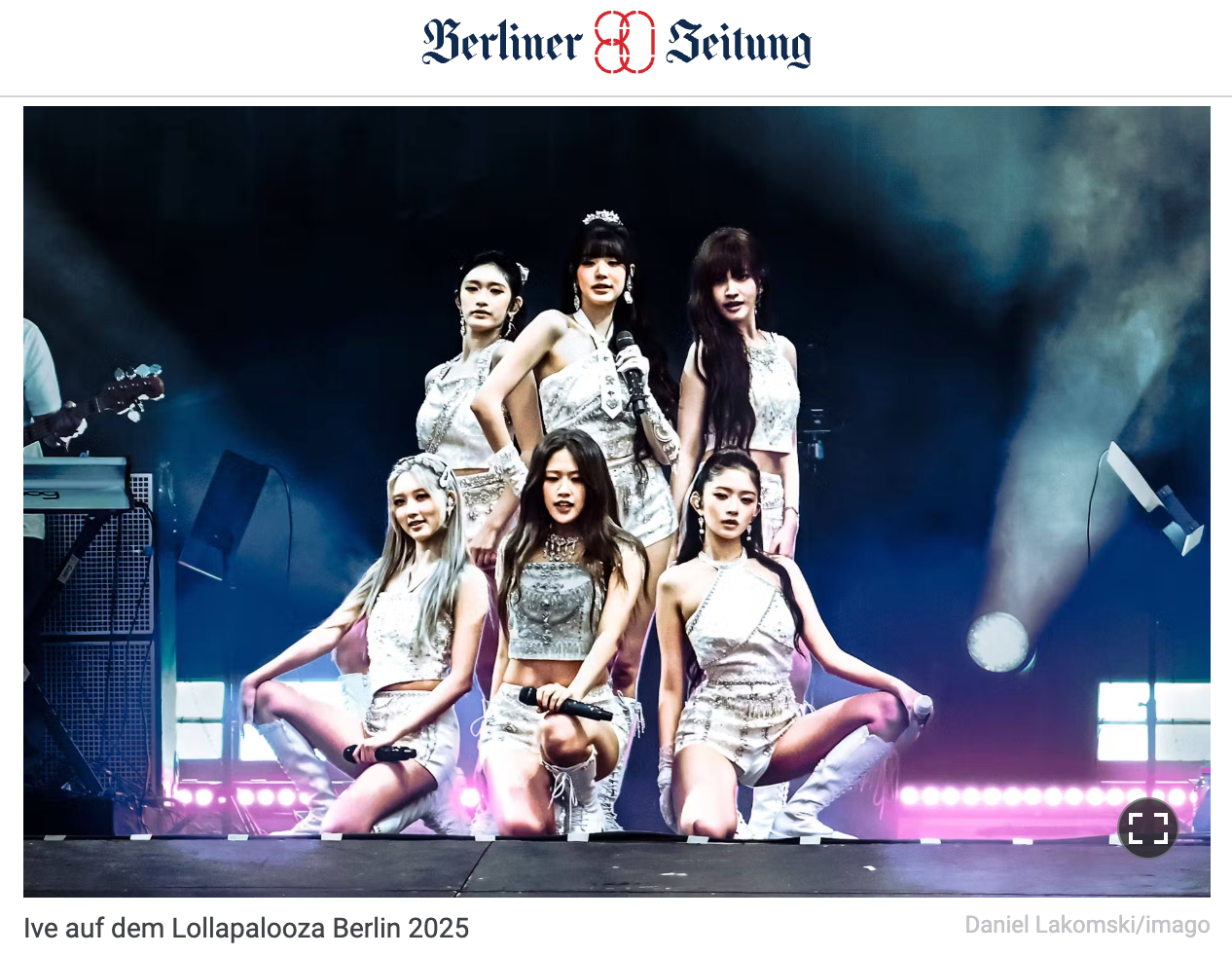 Top German daily Berliner Zeitung praised IVE's performance, calling them "the Korean Spice Girls" and highlighting their flawless vocal chemistry, live band set, and unwavering vocal stability. From Jang Wonyoung's deep tones to Liz's high notes, the group wowed with their musical versatility.